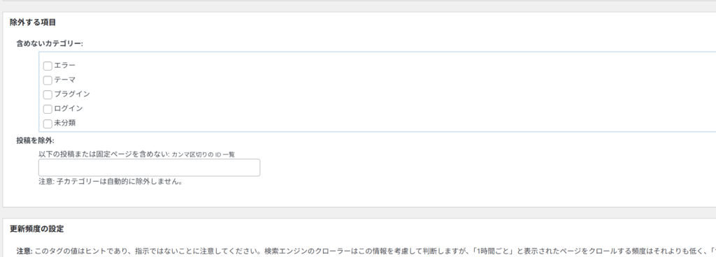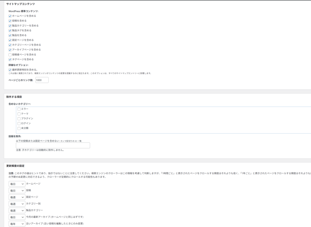 - 他のSEOプラグインとのサイトマップ機能重複に注意